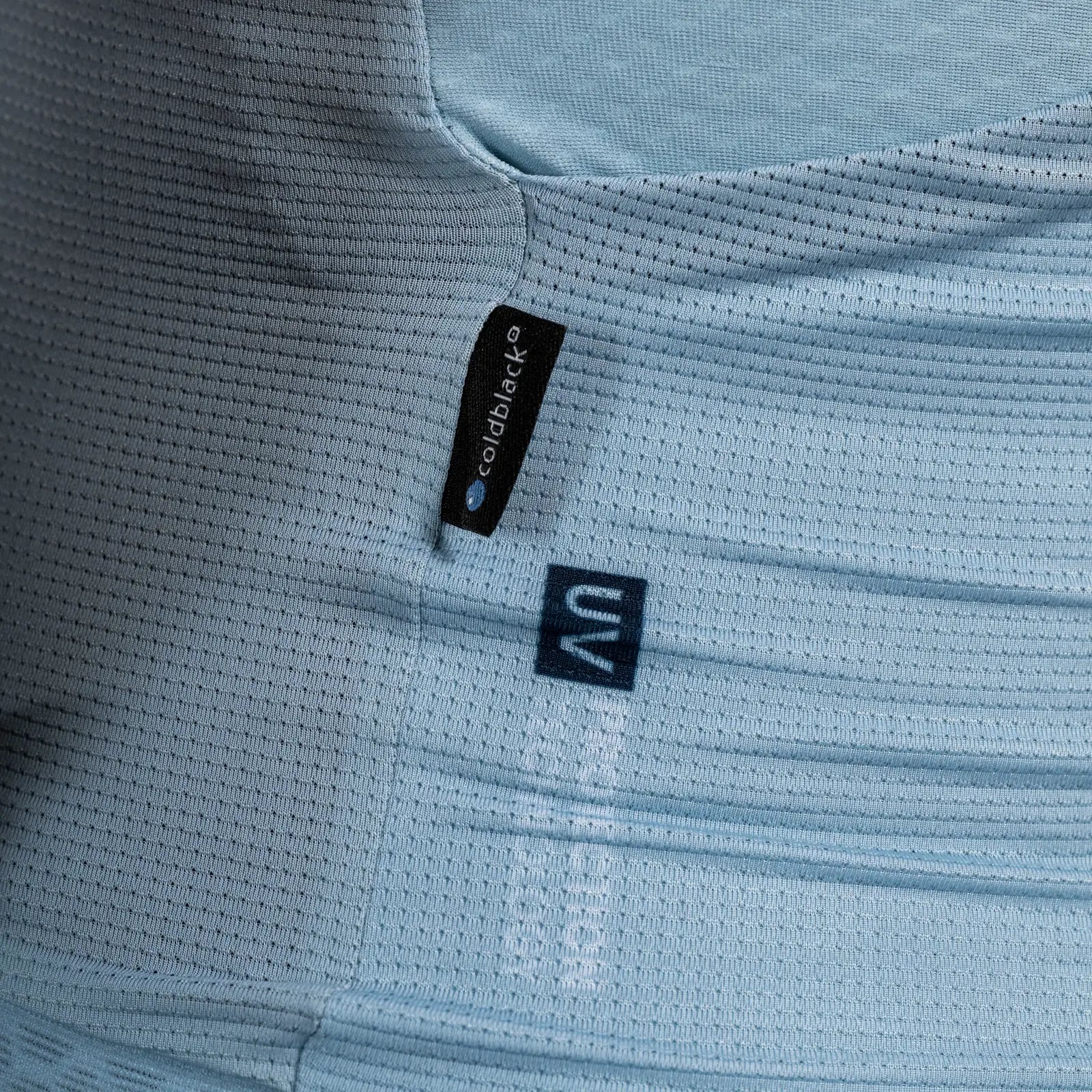Coldblackテクノロジー搭載バックパネル:紫外線を遮断し、UPF50で背中の日焼けを防止。