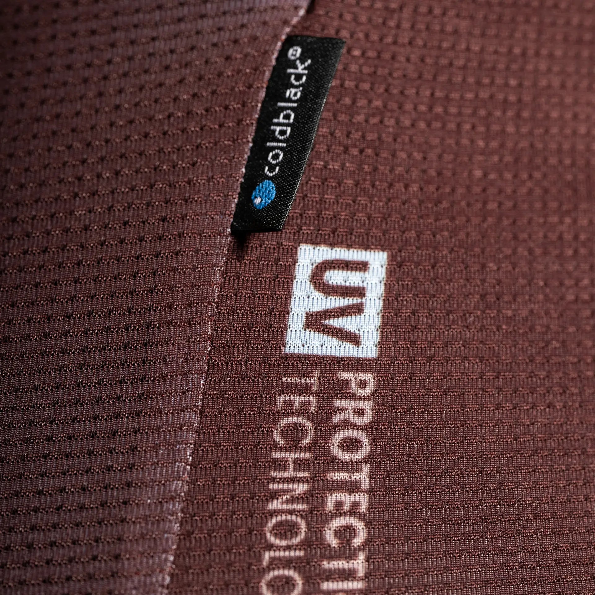 Coldblackテクノロジー搭載バックパネル:紫外線を遮断し、UPF50で背中の日焼けを防止。