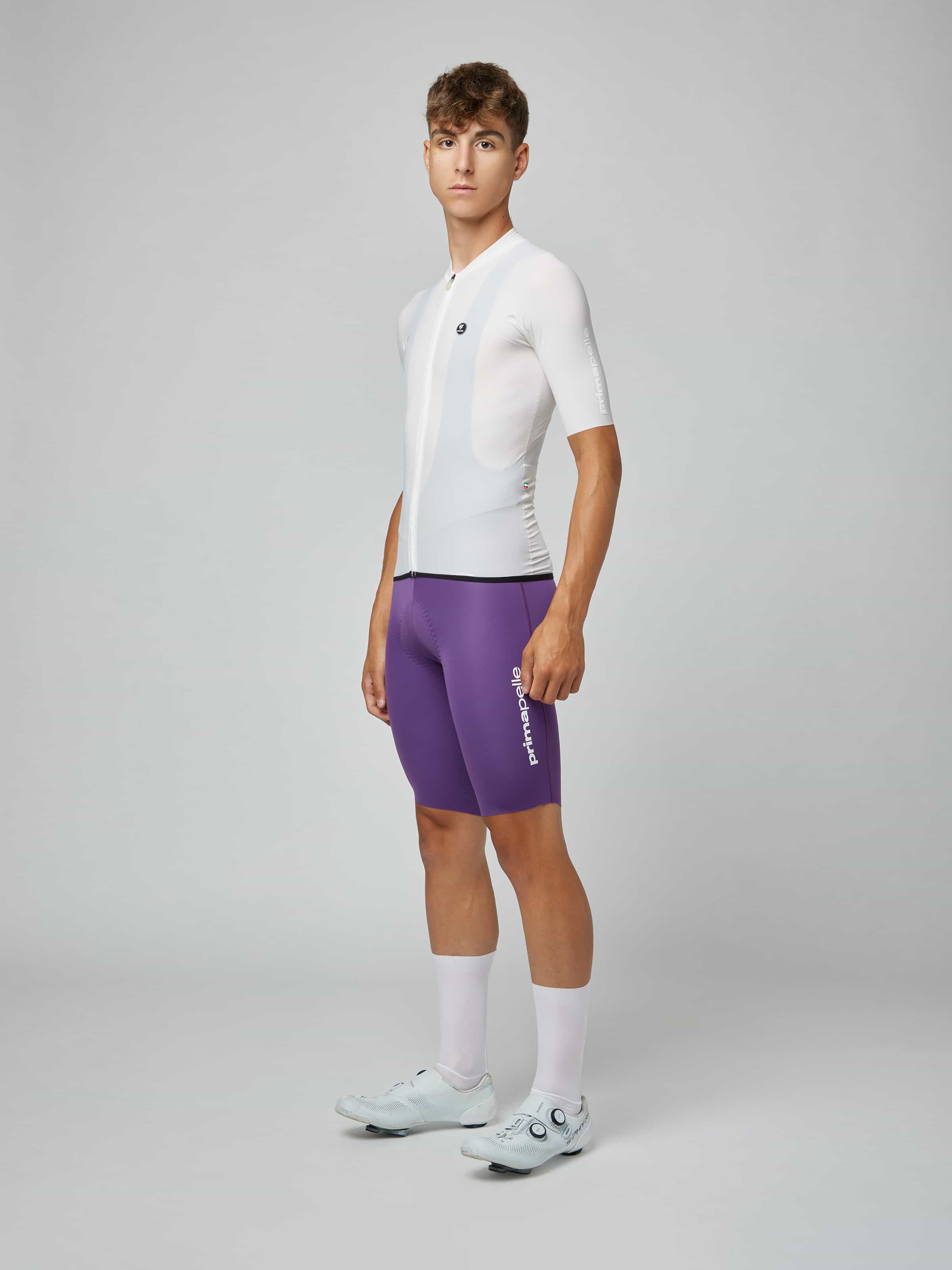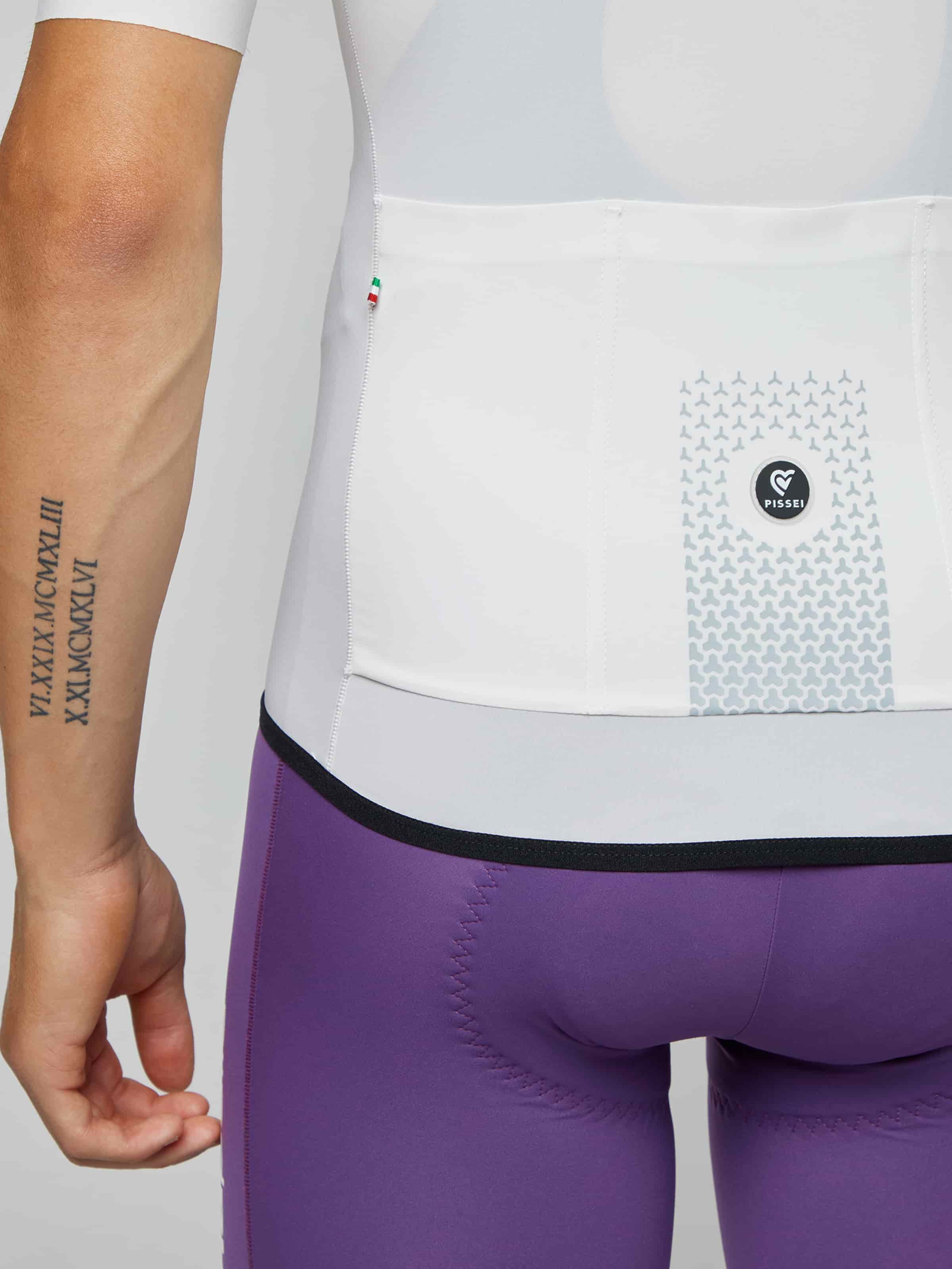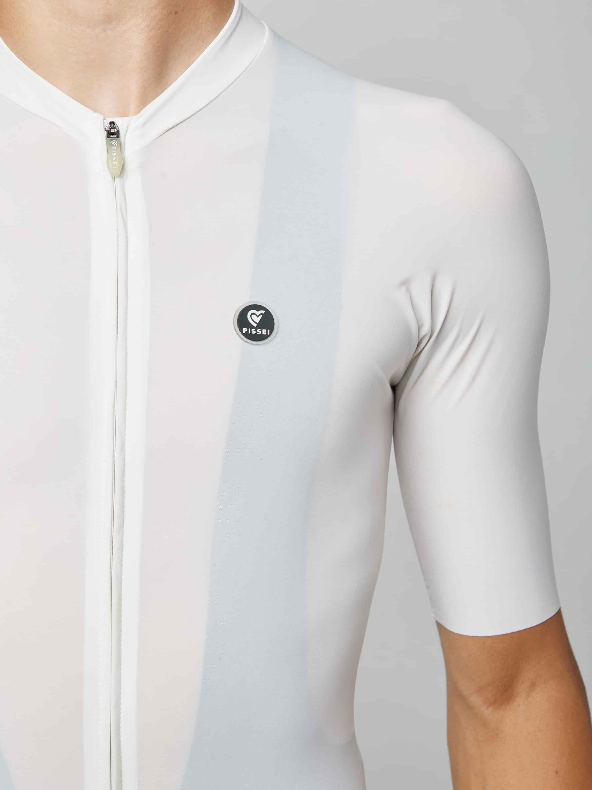 PISSEIが追求するトータルコンフォートの結晶、Primapelleジャージです。従来の肩縫い目を排除した一枚布構造と脇下の単一縫い目のみの革新的な設計に、実績あるBi-Directional Soft Touch素材を組み合わせることで、極限まで縫い目を削減。肌に触れていることをほぼ感じさせない、軽さ・快適性・空力性能の頂点を極めた一着です。