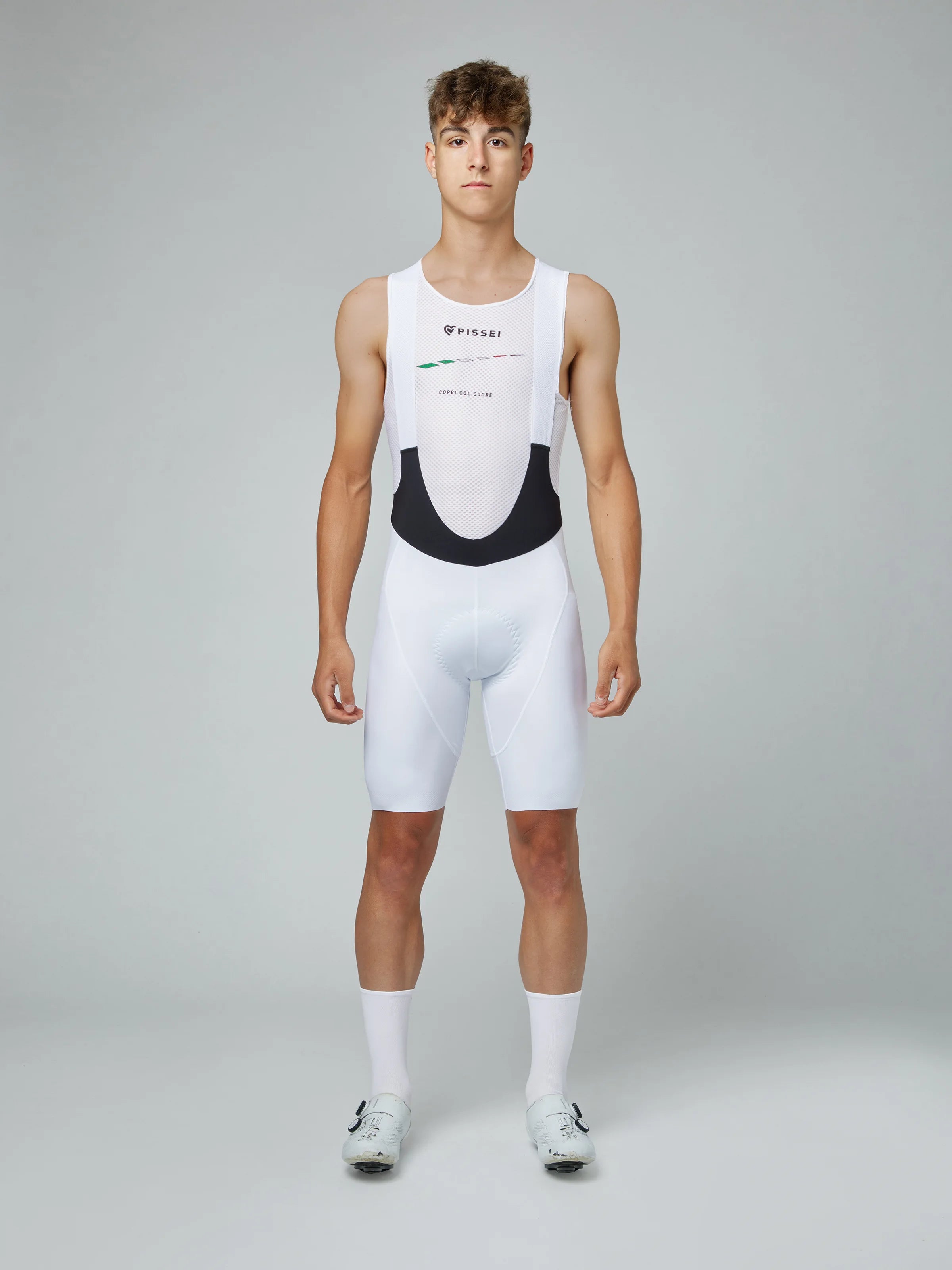 PISSEIサマーコレクションの礎を担うSanremoシリーズのビブショーツです。高密度ポリアミドのHyperextend素材がドライで反応性の高い着用感を提供し、優れた筋肉圧縮で激しいライドでの疲労を軽減します。レッグ部はエラスティックを排したローカットに強力な低アレルギー性シリコンコーティングを施し、あらゆる動きでも正しい位置を維持します。