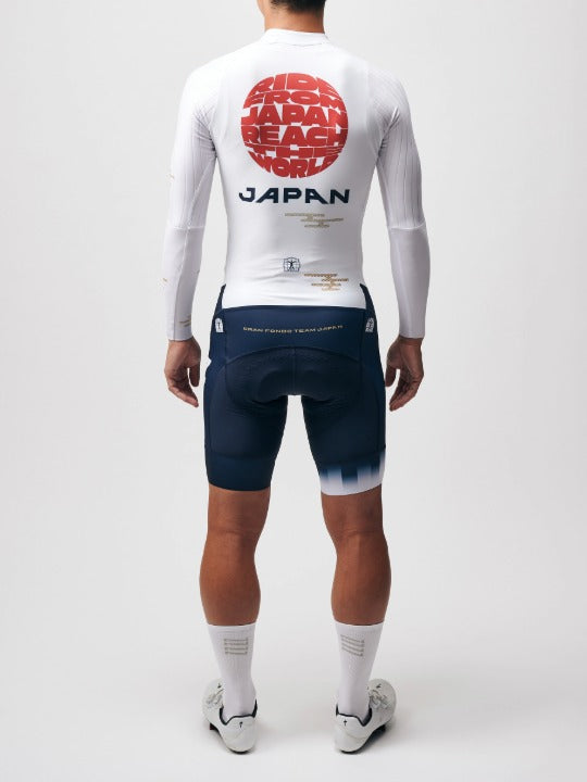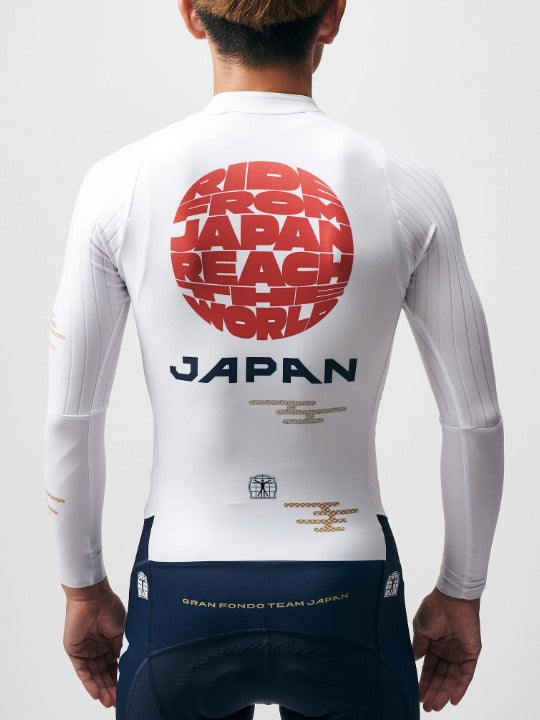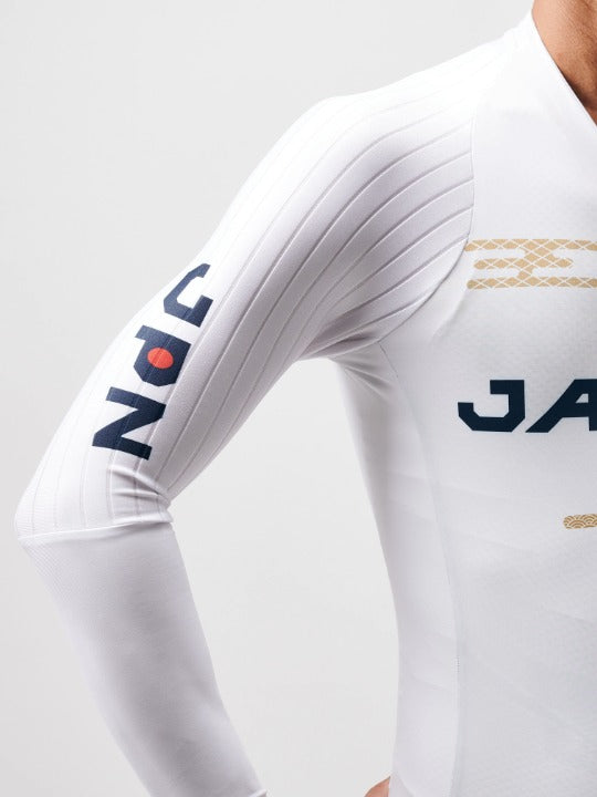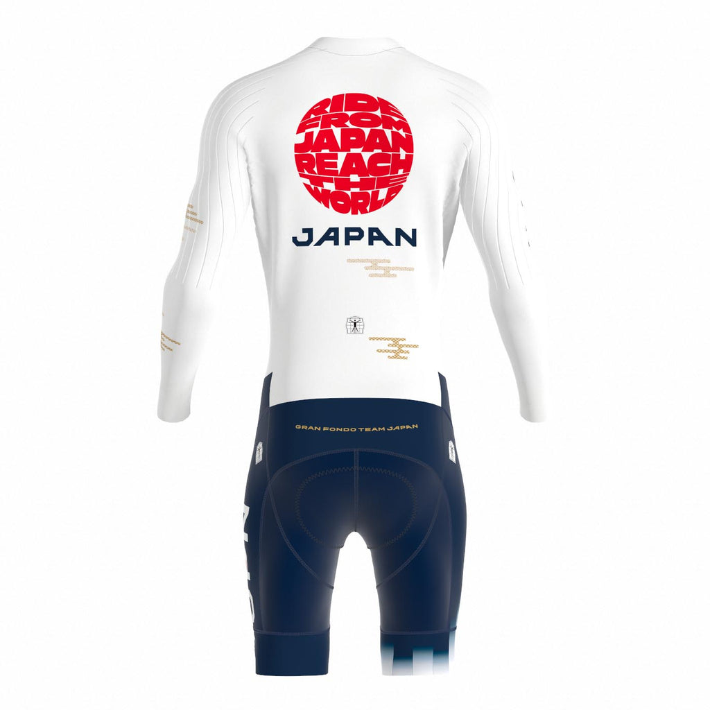 2026年開催「UCIグランフォンド世界選手権」Team JAPAN タイムトライアルユニフォームとして、日本代表選手たちの高速区間におけるパフォーマンスを最大化する1着として活用されます。